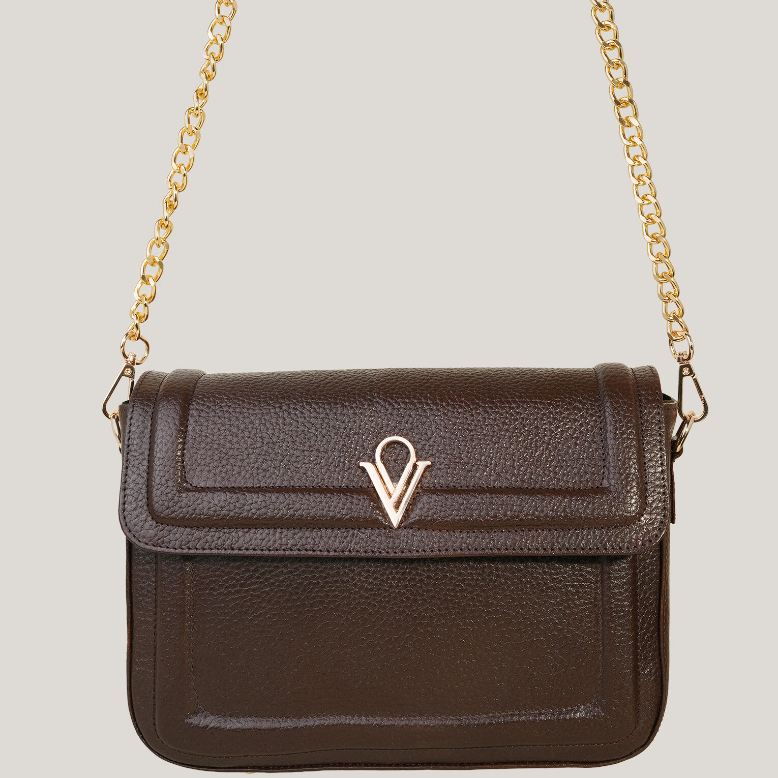 - Convertible leather strap with gold chain to wear crossbody or over the shoulder