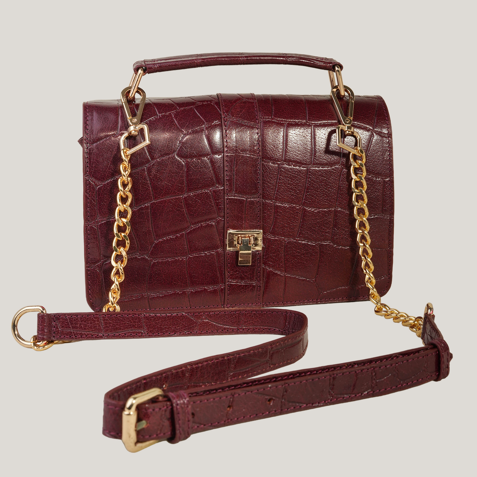- Premium full-grain leather with refined croc embossing