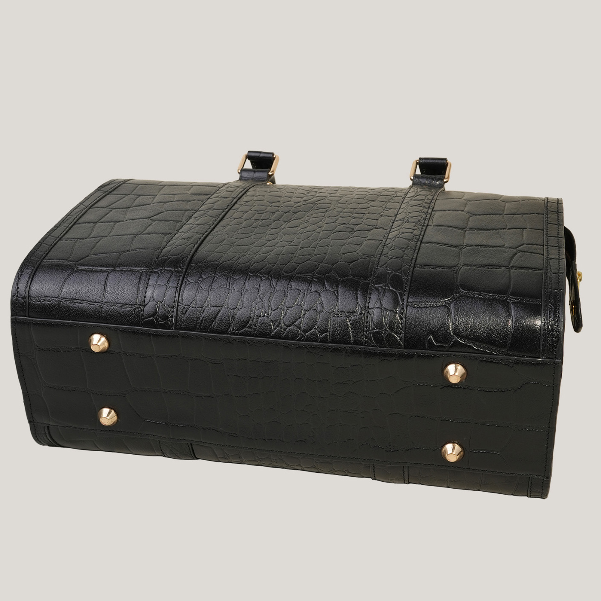 - Croc-embossed full-grain leather exterior for character and timeless texture